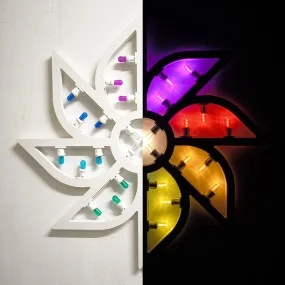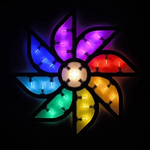 Girandola luminosa a 8 colori + nucleo bianco: effetto festa di paese in versione pop. Perfetta come punto focale...