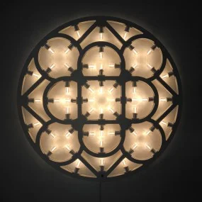 Rosone luminoso ispirato a Notre Dame di Losanna: 80 cm, 52 luci, effetto vetrata gotica contemporanea. Punto focale...